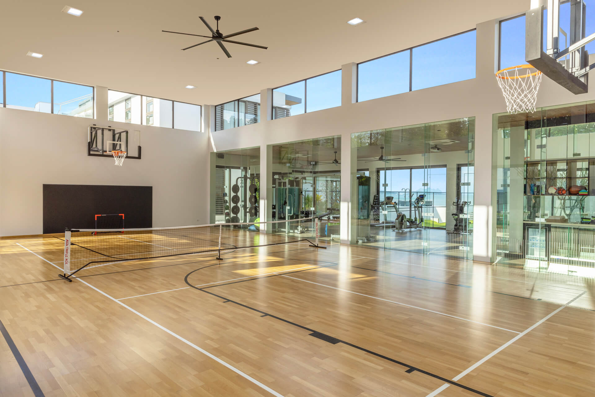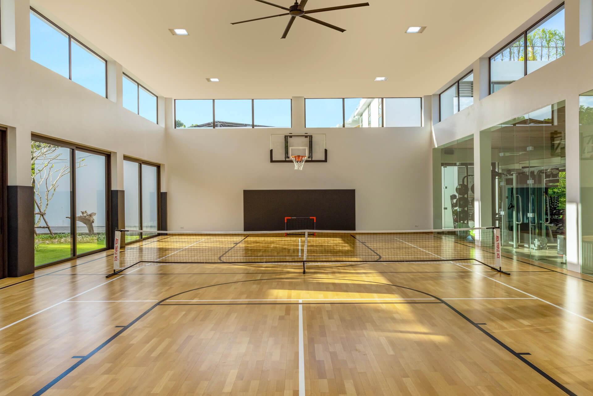 • In-villa fitness room with exercise balls and yoga mats