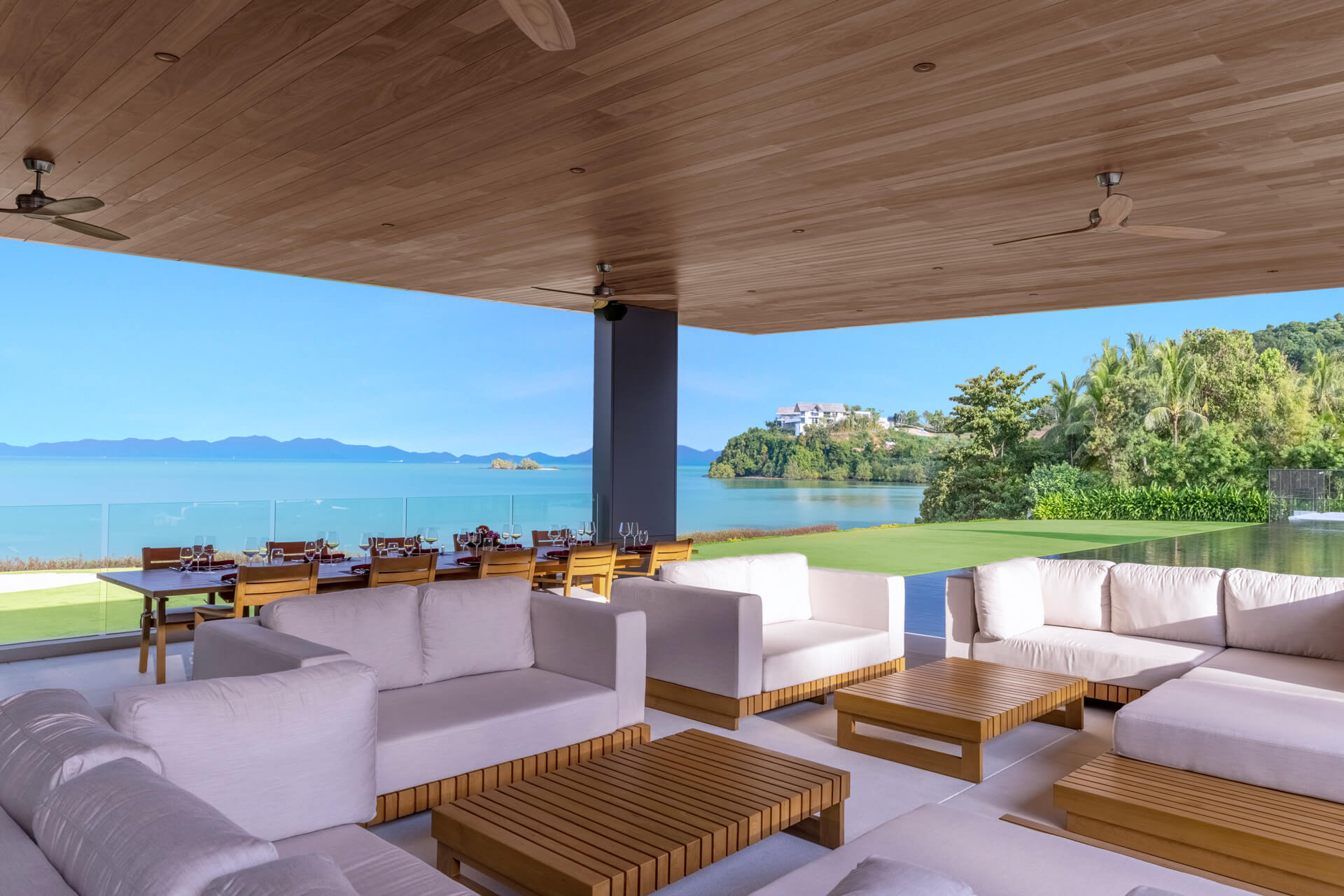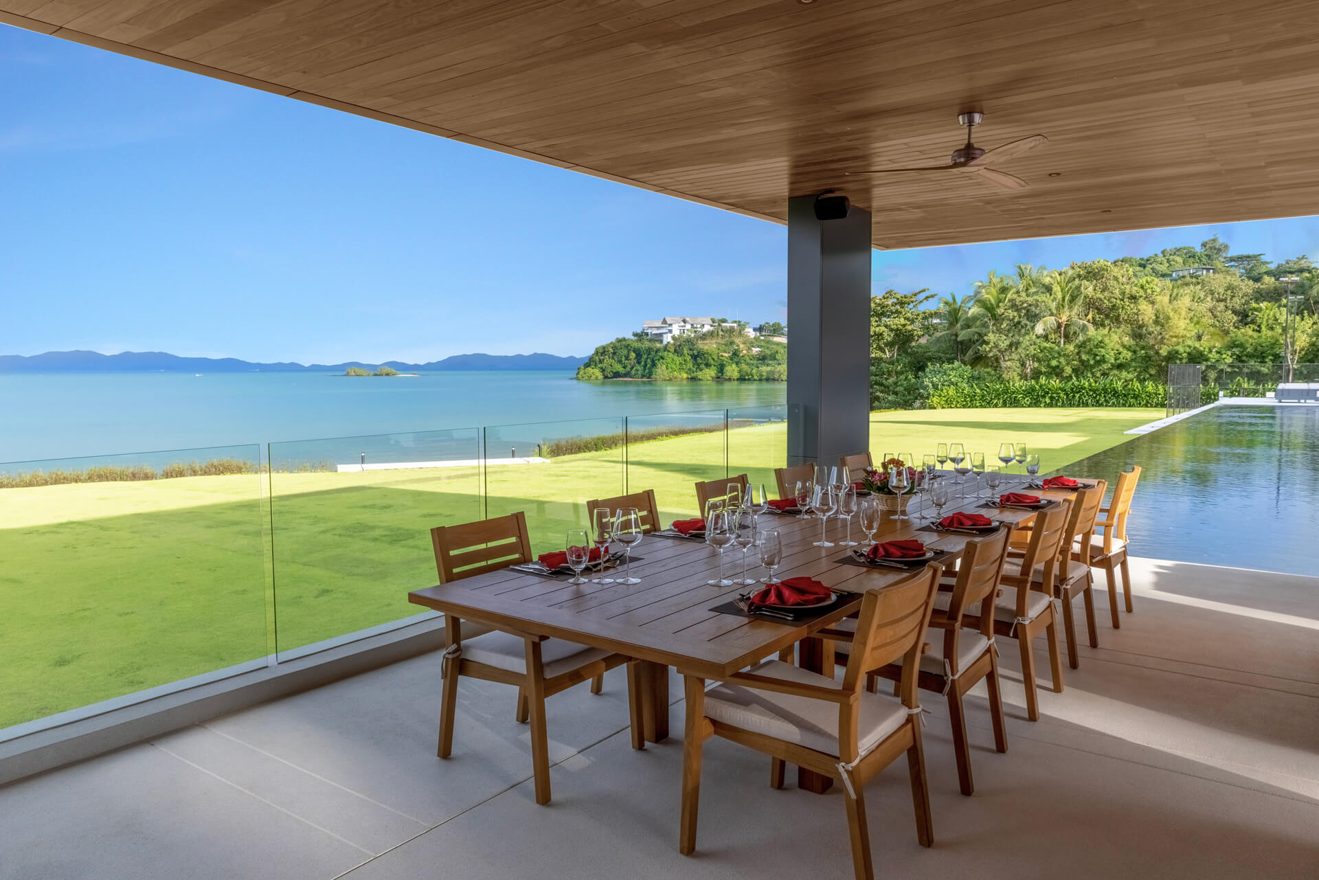 • Outdoor dining sala with seating for 12 guests, wall fans, BBQ facilities and panoramic sea view