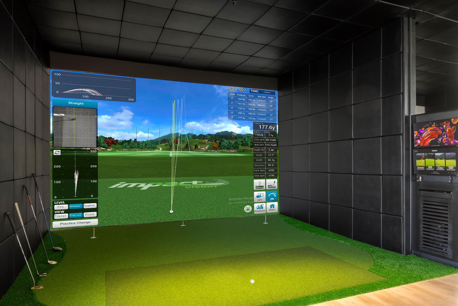 • 7 flat screen TVs with satellite channels and DVD players