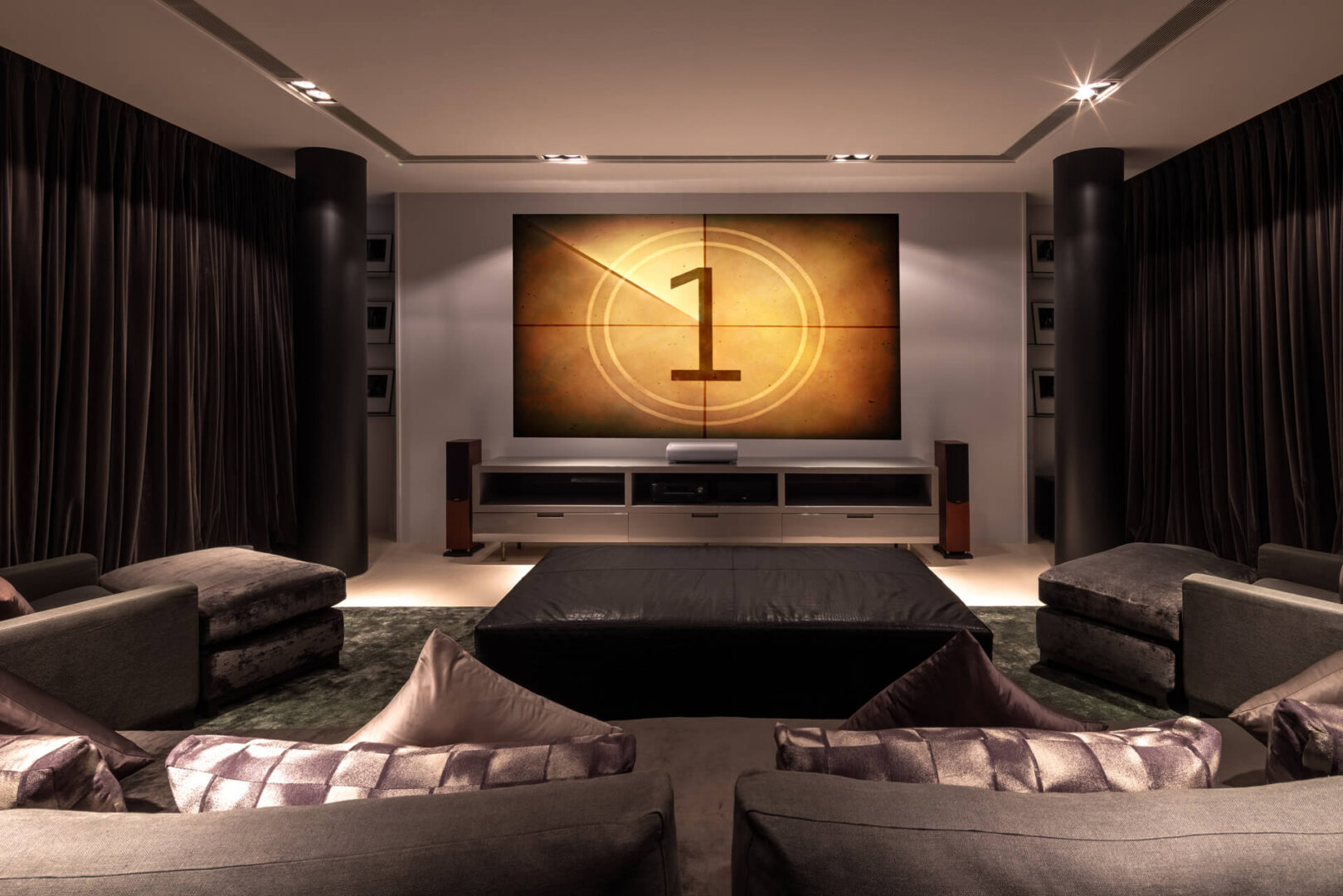 • Home cinema with Acer projector, Bose sound system, and seating for 8