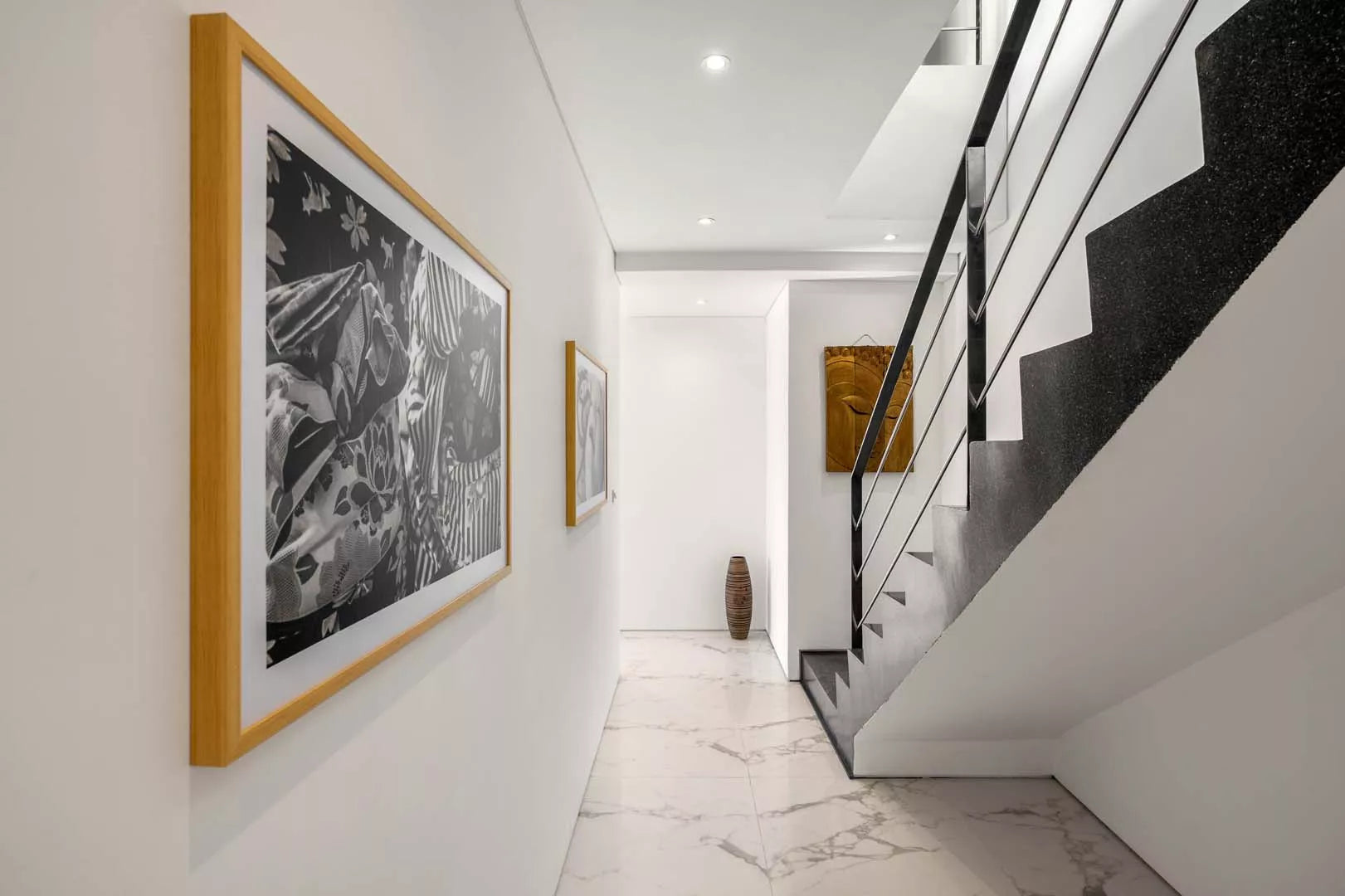 Balconies on both levels, each stretching the villa’s width