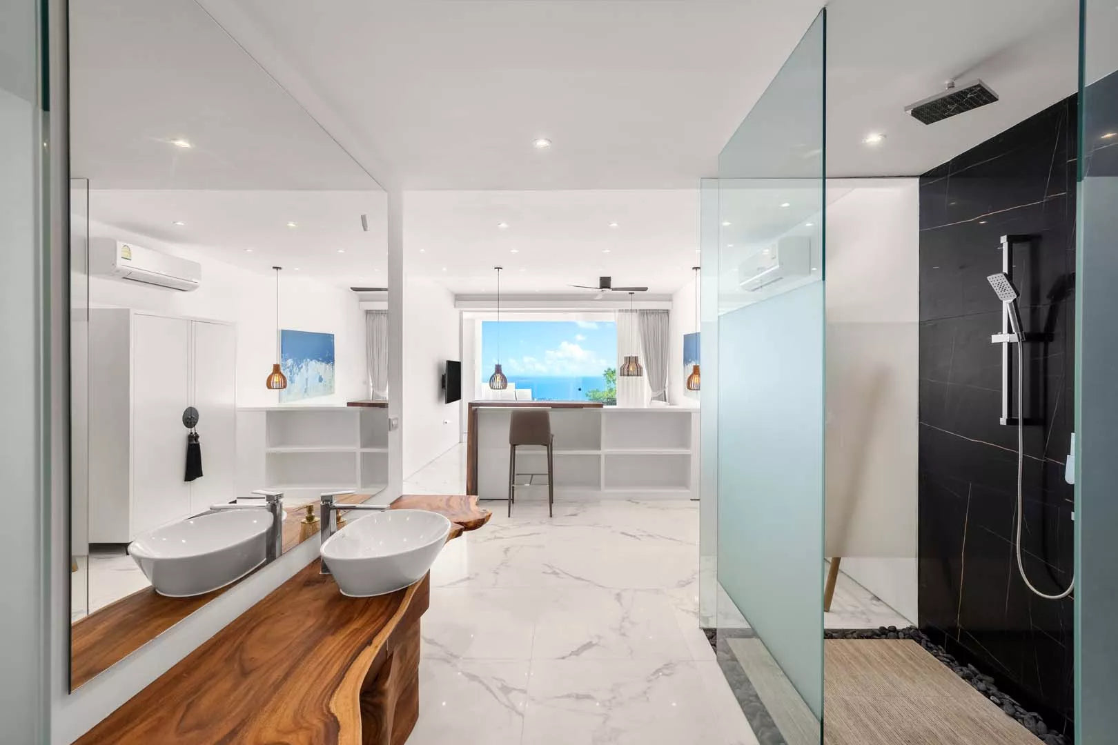 King-size beds, air conditioning, and modern open-plan bathrooms