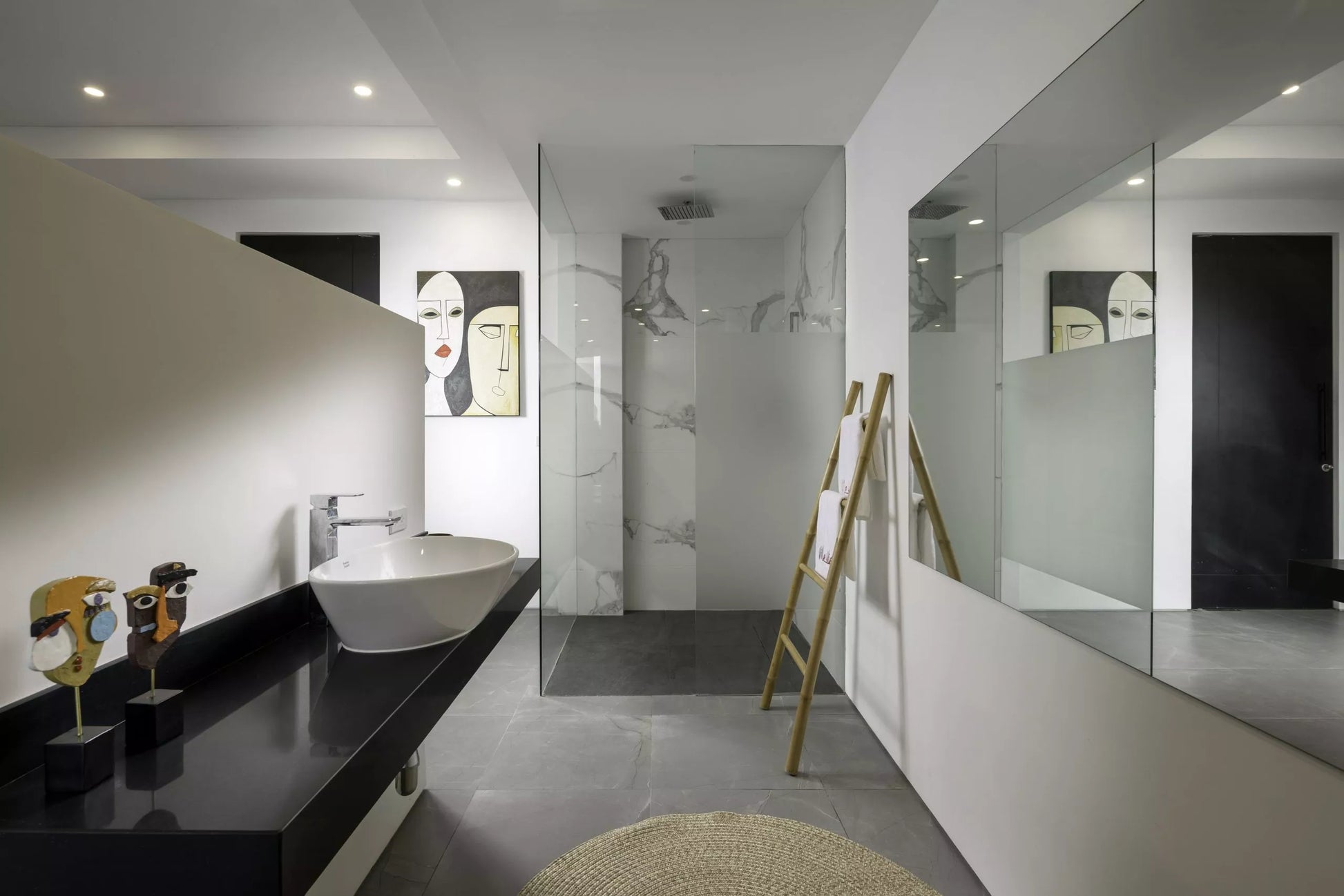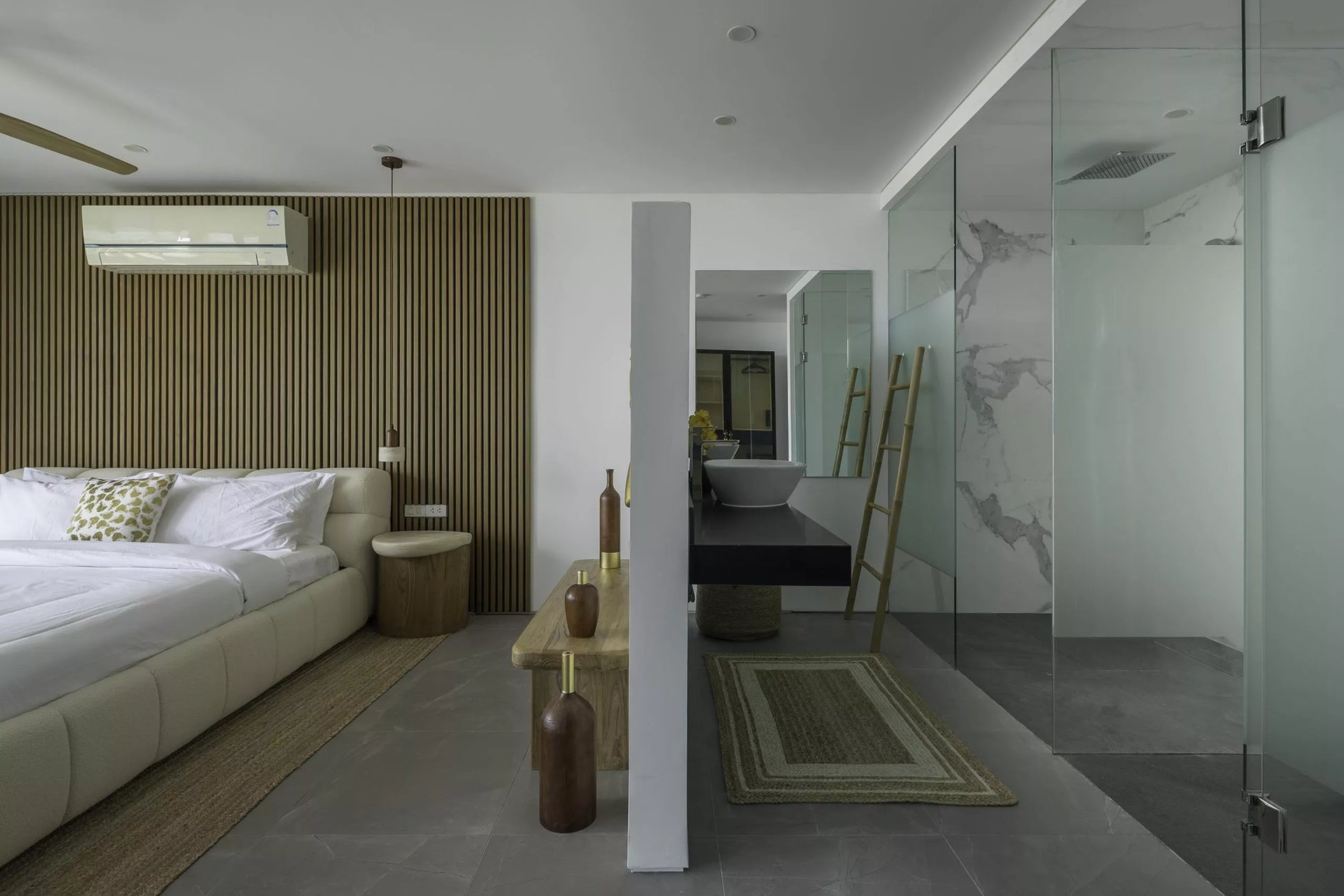 Six ensuite bedrooms, all with king beds, ocean views, and open rain-shower bathrooms. The design is minimalist and airy, with natural tones and modern finishes.