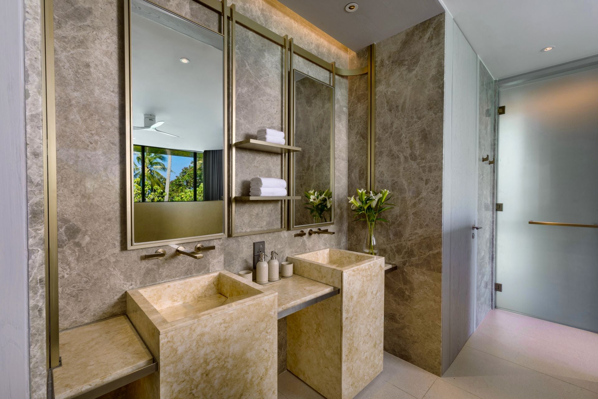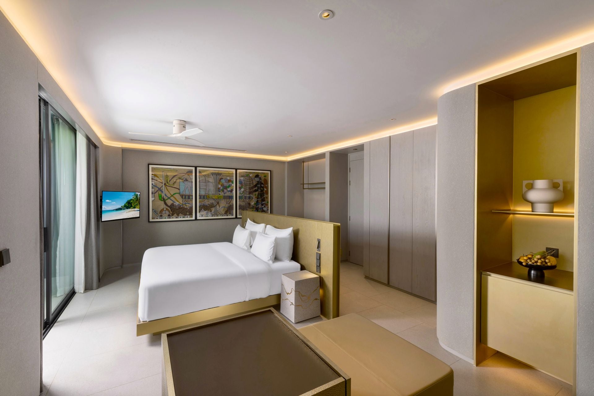 All bedrooms are fitted with air conditioning, ceiling fans, minibars, smart TVs, safety deposit boxes, and work desks. Additional comforts include bathrobes, slippers, hairdryers, umbrellas, beach bags, laundry bags, and premium toiletries, ensuring a luxurious stay for every guest.