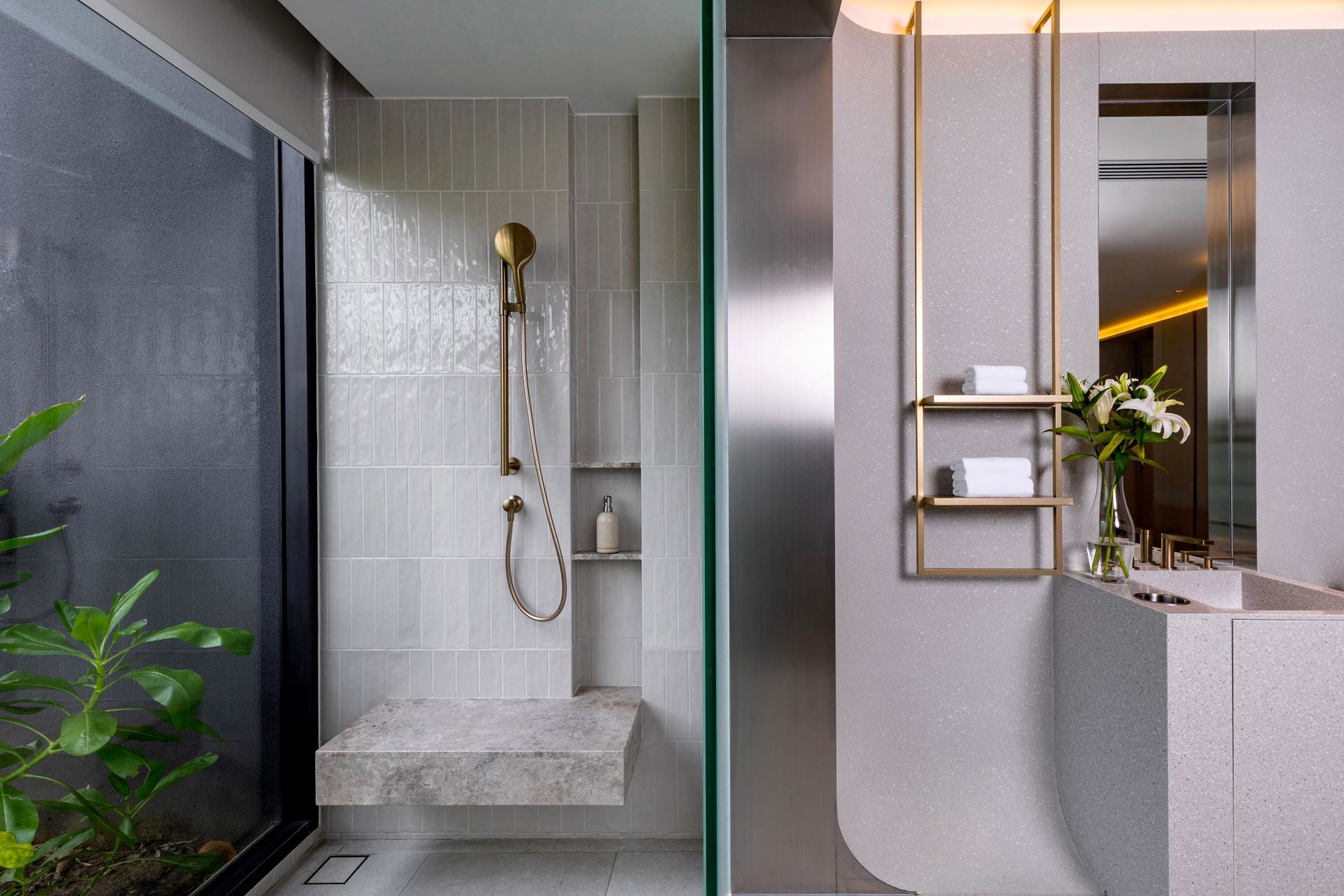 Two Duplex Suites (102 sqm each) combine sophistication with functionality, each featuring an emperor-size bed, lounge area, pantry, work island, and private balcony. Their bathrooms are equipped with Grohe rain showers, double vanities, and smart toilets.