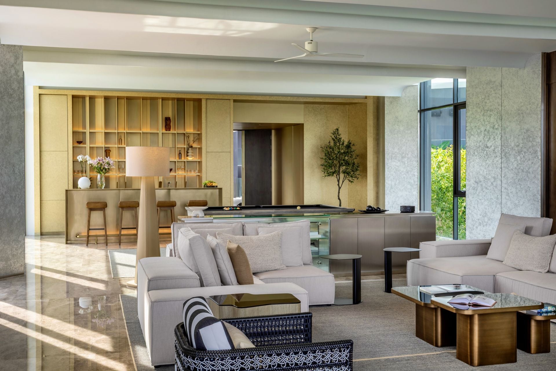 Designed for grand living, Villa features expansive indoor and outdoor spaces that flow seamlessly together. The vast living room, with seating for 20, opens to ocean views and includes a convertible billiards and table tennis setup. The dining room extends to a terrace with a private bar and poker table — ideal for relaxed evenings or lively gatherings.