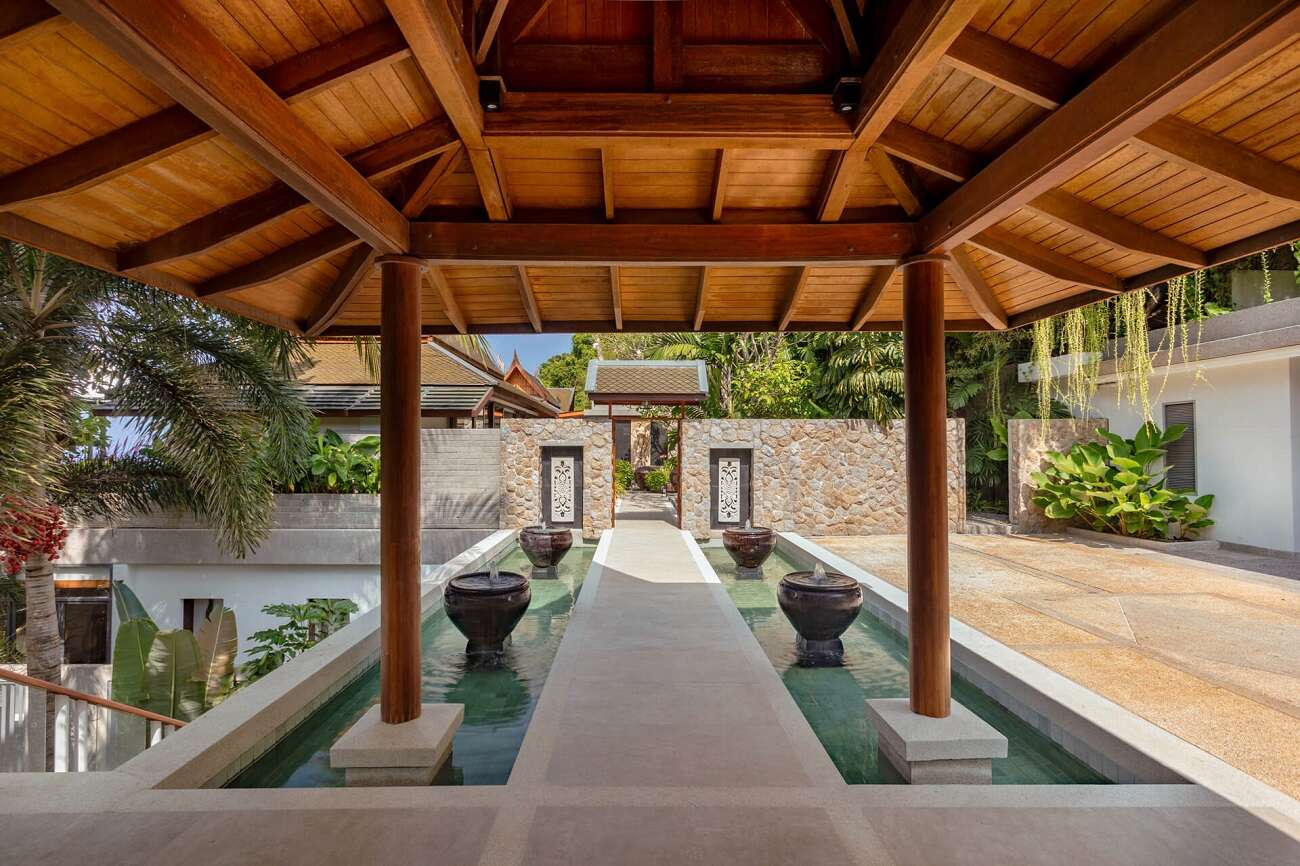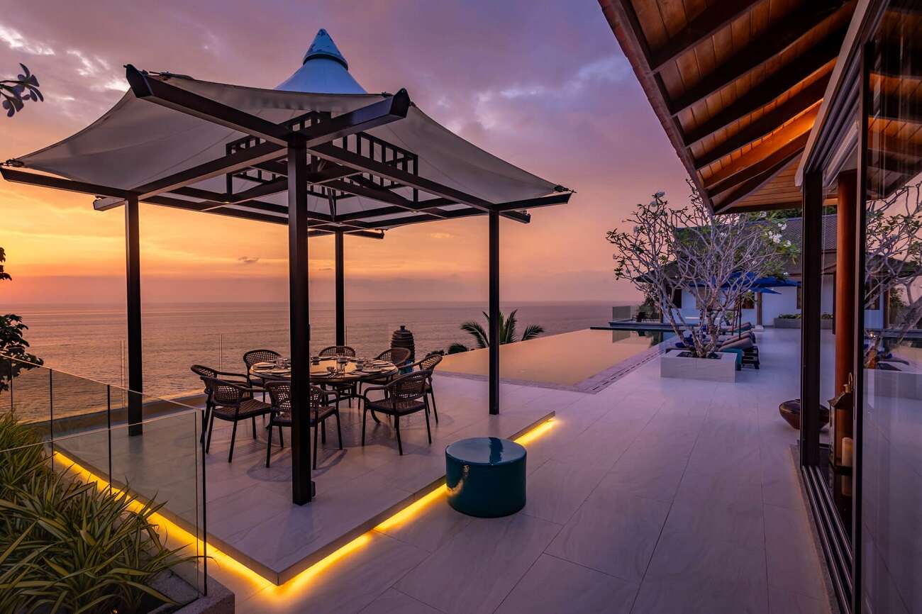 Blending traditional Thai architecture with contemporary elegance, the villa invites you into expansive living and dining spaces that open onto a stunning infinity pool merging seamlessly with the horizon. Guests can enjoy a private gym, and direct access to the sea, perfect for a morning swim or a peaceful stroll by the water.
